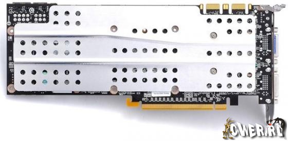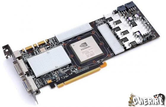Видеокарта оснащается дополнительными алюминиевыми радиаторами для микросхем памяти, чипа NVIO и элементов подсистемы питания. Частоты новинки остались стандартными: 602/1296/2214 МГц; видеокарта имеет 512-битную шину и оснащается 1 Гб памяти типа GDDR-3. На задней панели расположились два порта DVI и один выход S-Video.
