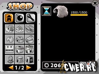 По ходу игры вы будете накапливать деньги, на которые сможете усовершенствовать свою "крепость", строить храмы, мастерские, покупать различные бонусы (атакующие и вспомогательные) и просто чинить строения.