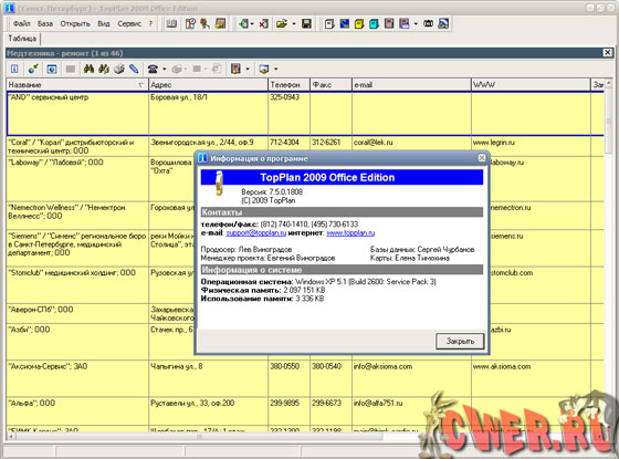 - Быстрый поиск и произвольные выборки информации из баз данных по названию организации, телефону, адресу, сфере деятельности, Интернет-адресу, дополнительной информации, по местонахождению на карте и по любым сочетаниям этих параметров.