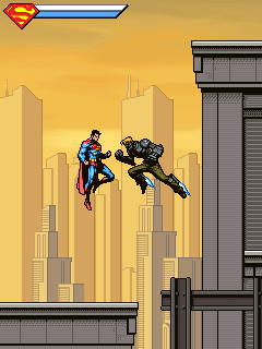Игра для мобильных телефонов. Два величайших героя, Супермен и Бэтмен, объединились для борьбы с негодяями. Ты можешь сыграть за обоих персонажей и использовать все их возможности. Летай, прыгай, круши негодяев с помощью кулаков и бэтаранга. Спаси планету от гибели! Размеры экранов: 128х128, 128х160, 176х208, 176х220, 208х208, 240х320, 320х240, 352х416.