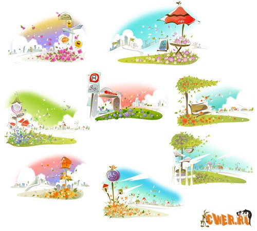 Скачать векторный клипарт - Весна (30,66 Мб):