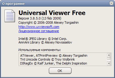 Universal Viewer (ATViewer) - это универсальный файловый просмотрщик с большим набором поддерживаемых форматов. Доступны следующие режимы просмотра файлов: Текст, Двоичный, Шестнадцатеричный, Юникод, любые файлы неограниченного размера (можно просматривать файлы в том числе большие 4 Гб), RTF и UTF-8 тексты, все основные форматы изображений: BMP JPG GIF PNG TGA TIFF..., все мультимедийные форматы поддерживаемые MS Windows Media Player: AVI MPG WMV MP3..., все форматы поддерживаемые MS Internet Explorer: HTML XML DOC XLS..., все форматы поддерживаемые Lister-плагинами к Total Commander.