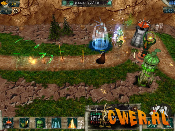 В игровом мире люди вынуждены прятаться от разнообразных чудовищ и монстров, ходячих и летающих, которые воспринимают любого человека, как обед...Но у вас есть возможность защитить своих немногочисленных подданных! Противостоять натиску страшилищ вы будете с помощью магических башен, каждая из которых обладает своей специализацией и широкими возможностями для улучшения. Ваши подзащитные будут помогать вам, по мере сил добивая раненых монстров и пополняя казну золотом. Простая в освоении, с интереснейшим геймплеем игра никого не оставит равнодушным. Примите брошенный вам вызов и сокрушите нечисть!