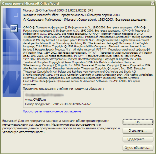 4. Патч замены ключа вызовет reg-файл, который в случае необходимости поможет сменить ключ для Office 2003, поможет вам это сделать ничего не удаляя и не переустанавливая. После применения патча и запуска любого приложения из пакета Вам будет предложено ввести серийный номер.