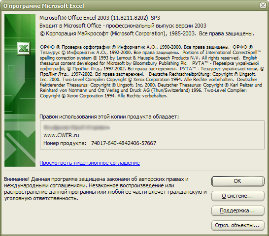 4. Патч замены ключа вызовет reg-файл, который в случае необходимости поможет сменить ключ для Office 2003, поможет вам это сделать ничего не удаляя и не переустанавливая. После применения патча и запуска любого приложения из пакета Вам будет предложено ввести серийный номер.