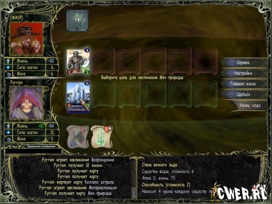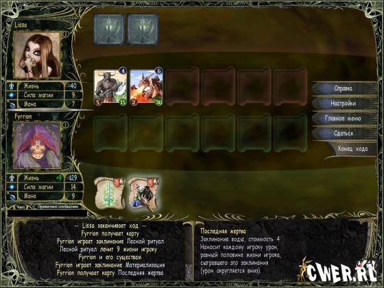 В боевых действиях участвуют специальные карты двух типов — существа и заклинания, с помощью которых вам и предстоит разгромить вражеские армии. Возможности игры позволяют каждому чародею найти себе подходящего соперника.