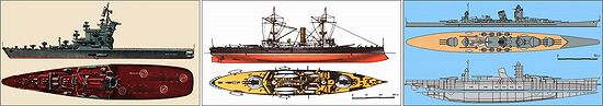 ТИПЫ КОРАБЛЕЙ: авианесущие, крейсера, линкоры, броненосцы, эсминцы, фрегаты, многоцелевые и ракетные подводные лодки, катера, десантные, минно-тральные, специального назначения.