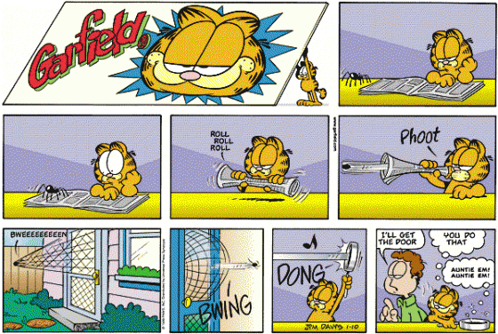 Гарфилд — популярный персонаж одноимённой серии комиксов, созданный художником Джимом Дэвисом, в которых фигурирует кот Гарфилд, туповатый и жизнерадостный пёс Оди, их социально-бестолковый хозяин Джон Арбакл, сотни его неудавшихся любовниц, говорящие весы, говорящие же мышь, паук и большой лохматый соседский пёс.Гарфилд был назван в честь дедушки Джима Дэвиса, Джеймса Гарфилда Дэвиса, которого назвали в честь президента США — Джеймса Гарфилда.