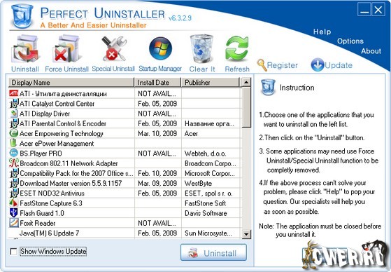 Perfect Uninstaller - отличная программа для полного удаления нежелательных программ, которые нельзя удалить с помощью стандартного диалога удаления и установки программ Windows. С этой программой вы сможете удалять ненужные приложения в вашей системе быстрее и легче. Стандартный диалог установки и удаления программ часто не может удалить определенные приложения или сломанные ключи реестра, в отличие от данной утилиты, программа не только позволит вам удалить приложения, но и очистит ваш ПК от поврежденных записей в системном реестре, улучшая производительность и скорость вашей системы. Кроме того, с помощью этого приложения вы сможете узнать детальную информацию о том, какие файлы и записи реестра затронула установка той или иной программы. Интерфейс программы прост и легок в использовании.