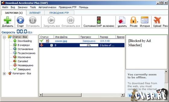 Download Accelerator Plus - менеджер закачек, позволяющей ускорить процесс скачивания файлов из интернета. Поддерживается одновременная загрузка с нескольких серверов, докачка после разрыва соединения, автовыключение компьютера после завершения сеанса работы. Утилита имеет встроенные средства поиска файлов на серверах. Менеджер хорошо интегрируется с браузерами, поддерживает работу через прокси и т.д. Имеется русский интерфейс.