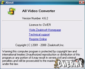 Zealot Video Workshop - это конвертер видео файлов различных форматов, нарезка и соединение видео файлов, создание и запись видео CD, DVD. 4 утилиты в одном "флаконе": All Video Converter, All Video Joiner, All Video Splitter и All Video to VCD SVCD DVD Creator & Burner.