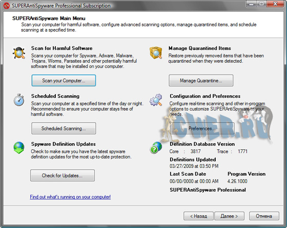 SUPERAntiSpyware Сама эта прога немаленький троян..........