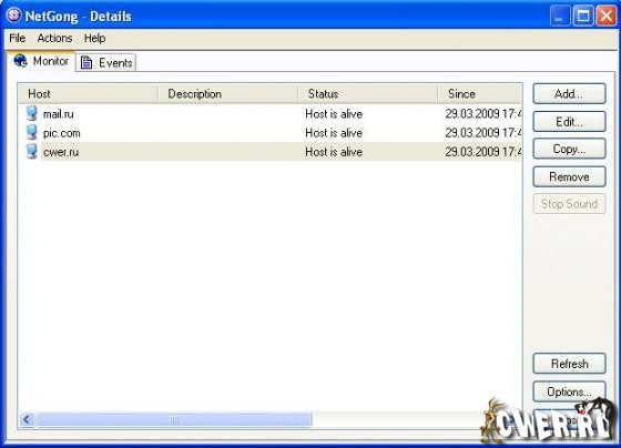 Мощная система мониторинга сетевой активности Tsarfin NetGong, позволяющая системным администраторам, веб-мастерам, провайдерам отслеживать сетевую активность. Данная программа позволяет проводить анализ и отображать данные об устройствах в Интернете, корпоративном интранете или локальной сети TCP/IP и получать извещения в случае нарушения связи. Сообщения могут быть в виде звуковой тревоги, сообщения на экране, электронного письма или запуска сторонних программ. NetGong является мощным средством для круглосуточного мониторинга сети.