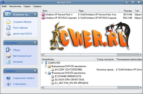 Alcohol 52% представляет собой приложение-эмулятор CD/DVD-приводов с функциями обхода защиты от копирования (поддерживаются практически все используемые на сегодняшний день решения, включая StarForce). После установки в системе появляется дополнительный виртуальный привод (до 6), вместо (31) у Alcohol 120%, к которому можно подключать образы дисков различных форматов (поддерживается работа с MDS, BWT, CCD, CUE, CDI, PDI, NRG и ISO)...