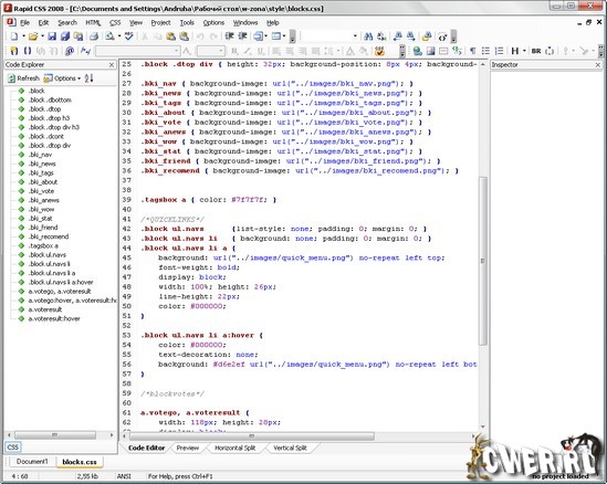 Rapid CSS 2008 - программа для изменения существующих и создания новых каскадных таблиц стилей (CSS). Обладает большим количеством специально заготовленных шаблонов, с помощью которых можно быстрее создавать каскадные таблицы стилей. Вы сможете написать код каскадной таблицы стилей вручную, либо предоставить это сделать данной программе. Результат работы можно оценить с помощью функции предварительного просмотра. Данный редактор призван сэкономить время и сделать вашу работу проще.