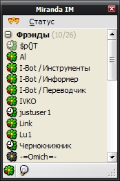 Miranda IM – менеджер мгновенных сообщений, поддерживающий работу в сетях ICQ, AIM, MSN, Jabber, Yahoo и других. Miranda IM позволяет создать собственную уникальную "сборку" Miranda, настроенную исключительно пода ваши индивидуальные требования.