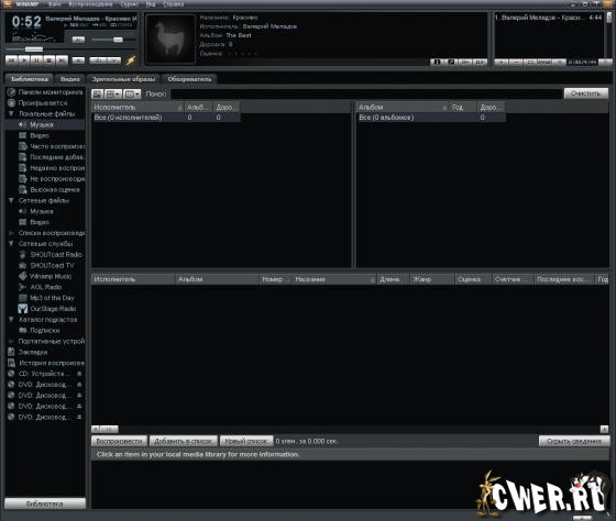Winаmp - это один из самых популярных медиаплееров. Программа позволяет работать с файлами в форматах MP3, OGG, AAC, WAV, MOD, XM, S3M, IT, MIDI и т.д., поддерживает воспроизведение видео (AVI, ASF, MPEG, NSV), имеет большое количество настроек и параметров, обладает возможностью смены скинов, имеет хороший модуль визуализации, медиа-библиотеку и многое другое!