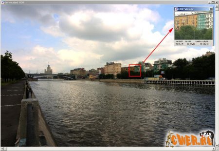Через некоторое время усиленной работы компьютера он выдаст вам вот такую (или очень похожую) картинку. Выглядит она не очень привлекательно, но я уже говорил, что монитор не в состоянии правильно и полностью отобразить наш HDR файл по описанным выше причинам. Но в программе Photomatix есть интересный инструмент – динамическая лупа ( HDR Viewer). Передвигая курсор мышки по экрану в окне лупы, вы можете рассмотреть детально реальную информацию с количественными показателями координат, яркости и каждого из цветовых каналов, которая располагается в нижней части окна лупы. Таким образом, пройдя по всей картинке, особенно в проблемных местах, вы можете убедиться, что все тени и света хорошо проработаны. Если нет, то пробуйте изменить эксповилку в проявках RAW или немного поиграть с выбором кривых генерации. Если это не помогает (в случае реального брекетинга), то можно попробовать немного отредактировать исходные файлы вручную. Дело в том, что к ручной коррекции исходных файлов иногда все равно приходится прибегать, пока не научитесь выбирать сразу объект съемки для последующей обработки с технологией HDR, но об этом чуть позже.