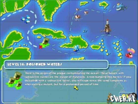 И, к тому же, ярко и динамично! Вы встретите рыб-мутантов, препятствия в виде бомб и другие приятные штучки, которые внесут свои коррективы в прохождение игры. Но тому, чья цель - вершина морской пищевой цепи, море по колено!