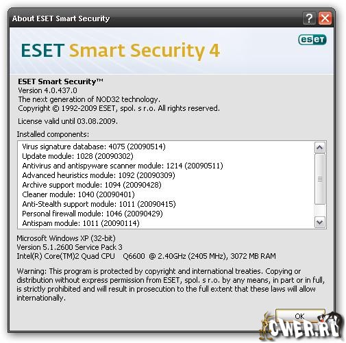 Скачать ESET Smart Security 4.0.437 (33,9 МБ):