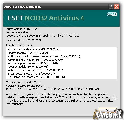 Скачать ESET NOD32 Antivirus 4.0.437 (33,8 МБ):