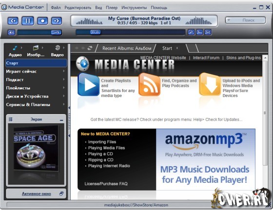 J.River Media Center - мультимедийный центр. Проигрывает большинство популярных аудио и видео форматов, включая MP3, аудио CD и DVD, может преобразовывать CD-аудиотреки в WAV и MP3, переписывать на жесткий диск виниловые диски и кассеты, а также создавать аудио-CD, причем для всех этих функций программа имеет множество настраиваемых параметров. Кроме этого, есть очень хороший и мощный по своим возможностям органайзер мультимедийных файлов, медиаредактор, эквалайзер, встроенный DSP и удобный планировщик заданий для автоматизации процессов проигрывания/записи, а также поддержка пульта ДУ. Из необязательных, но приятных функций - становящаяся уже почти стандартом для "приличных" программ возможность изменения внешнего вида с помощью скинов, мини-режим проигрывателя и "телевизор".