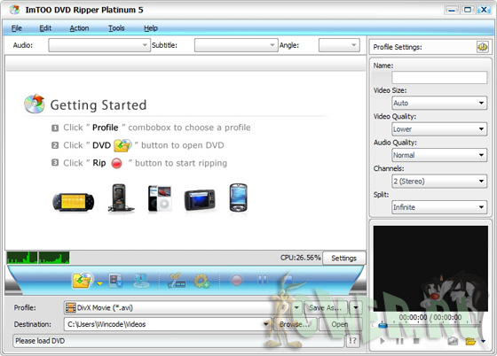 ImTOO DVD Ripper Platinum - это мощная утилита для копирования DVD, которая поможет Вам быстро преобразовать DVD в любой формат видео файлов. Программа совмещает функции DVD- риппера и DVD- аудиориппера, т.е. она сможет конвертировать DVD во все популярные форматы видео, такие как AVI, MPEG, WMV, DivX, RM, MOV, MP4, 3GP, 3G2, Xvid, ASF и т.п. и популярные аудио форматы - MP3, WAV, WMA, AAC, AC3, M4A, MP2, OGG. Поддерживает конвертацию для iPod, мобильных телефонов, PSP, DVD, MP3 и MP4 плееров.