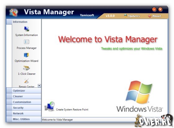 • Information. Get detailed system and all hardware information on your system; show all detailed information of running processes and threads on your machine; Vista Manager offers 1-clicking cleans your system automatically.