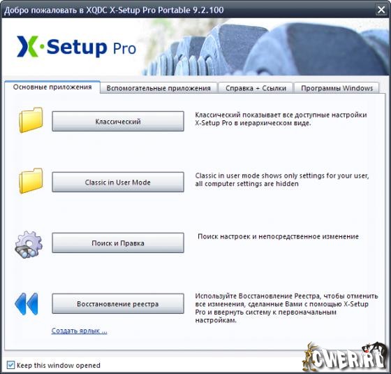X-Setup Pro Portable - позволяет менять около двух тысяч скрытых настроек Windows, причем позволяет настраивать не только общие для всех разновидностей Windows параметры, но и имеющиеся только у тех или других "окошек" (например, которые есть только в Windows 2000/XP).