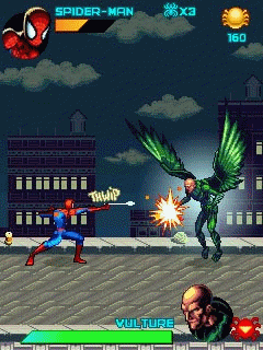 Green Goblin распространяет сыворотку, способную превратить невинных горожан в монстров-мутантов. Взяв на себя роль Spider-Man, вы будете противостоять сильным противникам: Electro, Shocker, Rhino, Vulture, Doc Oc и многим другим. Победите их и возьмите их ДНК, чтобы разработать противоядие сыворотке Green Goblin. По мере развития сюжета, вы откроете много новых возможностей Spider-Man: плетение паутины, лазанье по стенам и новые движения в бою. Художественная анимация и дизайн удачно передают всю сущность знаменитого комикса о Spider-Man. Размеры экранов: 128x160, 176x208, 176x220, 240x320, 320x240, 352x416.