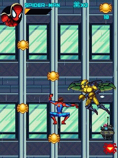 Green Goblin распространяет сыворотку, способную превратить невинных горожан в монстров-мутантов. Взяв на себя роль Spider-Man, вы будете противостоять сильным противникам: Electro, Shocker, Rhino, Vulture, Doc Oc и многим другим. Победите их и возьмите их ДНК, чтобы разработать противоядие сыворотке Green Goblin. По мере развития сюжета, вы откроете много новых возможностей Spider-Man: плетение паутины, лазанье по стенам и новые движения в бою. Художественная анимация и дизайн удачно передают всю сущность знаменитого комикса о Spider-Man. Размеры экранов: 128x160, 176x208, 176x220, 240x320, 320x240, 352x416.