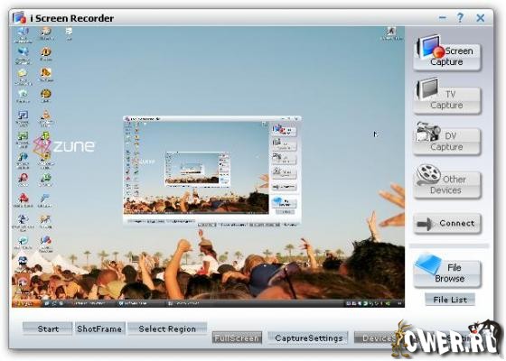i Screen Recorder – мощный инструмент, который позволит Вам легко захватывать и делать аннотации к чему угодно – в Вашем распоряжении все, что отображается на экране компьютера: окна, объекты, меню, полноэкранный режим, промотка вебстраниц и так далее. Изображения сохраняются в форматах BMP или JPG. Кроме того, программа позволит Вам делать захват видео или изображений с DV, TV-тюнера или других устройств. Пользовательский интерфейс утилиты был основан на двух китах: внешняя привлекательность и быстрый доступ ко всему функционалу программы. Программа имеет три основные кнопки управления, которые находятся в основном окне приложения.