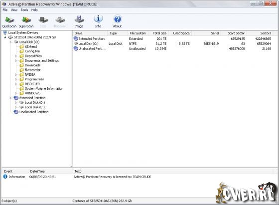 Active@ Partition Recovery - мощный инструмент для восстановления случайно удаленных разделов жестких дисков из Windows среды. Также с помощью данной утилиты можно делать резервную копию MBR таблиц разделов, загрузочных секторов жёсткого диска. Восстановление MBR происходит из резервных копий, и даже если структура таблиц разделов была повреждена вирусами или неосторожно удалена, вы сможете получить доступ к секторам жесткого диска, используя утилиту Disk Viewer. Программа поддерживает файловые системы FAT12, FAT16, FAT32, NTFS и NTFS5, а также интерфейсы IDE, ATA, SATA и SCSI. Кроме того, программа позволяет создавать образы дисков, корректировать файл BOOT.INI, поддерживает жесткие диски больших размеров, позволяет корректировать загрузочные сектора и многое другое.