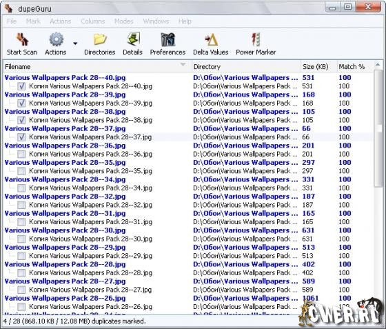 DupeGuru Picture Edition - инструмент для поиска дублирующихся графических файлов на жестких дисках компьютера. Просканирует диск, проверит графические файлы по имени, содержанию и выдаст результат в виде наглядной таблицы. Программа позволяет быстро находить дублирующиеся файлы, причем находит не только точные соответствия, но и может находить дубликаты среди изображений в разных форматах и разном качестве.