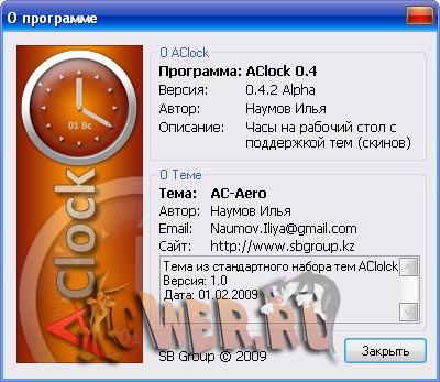 Скачать AClock 0.4.2 (1,22 МБ):