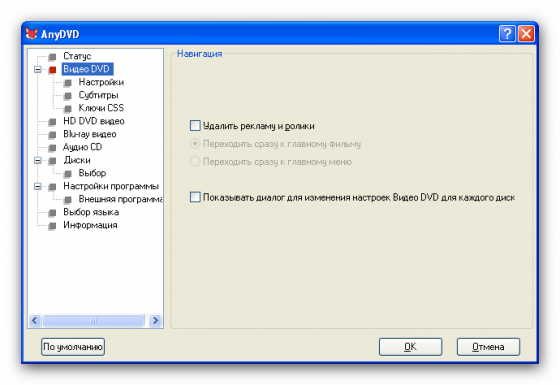 AnyDVD способен удалять нежелательные свойства фильмов, включая субтитры и запрещения, например, авторское право и предупреждения ФБР. Также, он позволяет запускать наружное применение, когда бы вы ни перемещали диск, предотвращать автоматический запуск 'дружественного' ПО, когда вы вставляете DVD с видео. Декодирование - это не все, на что способен AnyDVD. Вы можете контролировать скорость DVD-дисковода, позволяя уменьшить уровень шума при просмотре фильмов на ПК. И даже регулировать частоту отображения на вашем мониторе для стандартов NTSC и PAL. Также, AnyDVD дешифрует защищенные аудио-CD, чтобы вы могли скопировать их.