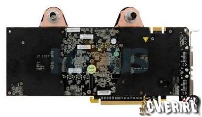 Известно, что новая модель, название которой пока не оглашено, оснащена покрывающим почти всю печатную плату нестандартным по дизайну низкопрофильным водоблоком предположительно от компании Danger Den, который должен обеспечить качественный отвод тепла от пары созданных по 55-нм технологии чипов G200-400-B3 и других "горячих точек" ускорителя.
