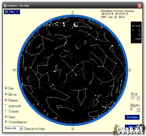 Johannes Kepleris - программное обеспечение для астрологов и астрономов. Программа предоставляет высокую эфемериду точности и превосходный планетарий. Kepleris обеспечивает реальную модель местного неба, которое включает все необходимые объекты - Солнце, Луна, Ртуть... Плутон, 3141 звезда, 1598 астероидов и 101 комета. Весьма легко наблюдать их и получить любую интересную карту или данные. Карта зведного неба показывает все созвездия, их полные числа, границы и названия.