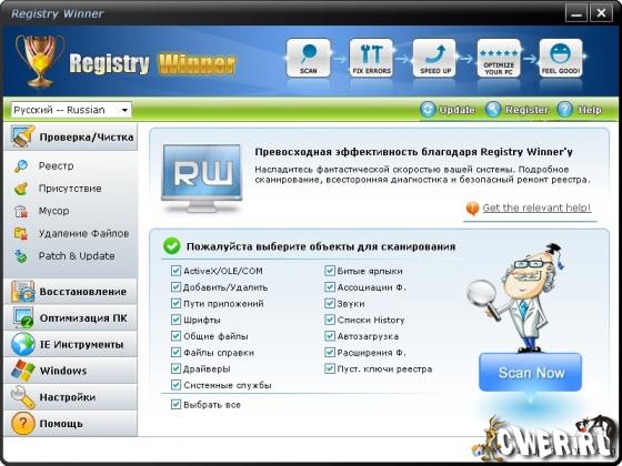 Registry Winner – программа для улучшения работы компьютера, которая находит ошибки, оптимизирует систему и ускоряет ее. Вы можете столкнуться с различными проблемами, которые постепенно появляются с использованием компьютера, например, замедление, зависание, «голубой экран смерти», постоянные сообщения об ошибках и т.д. Registry Winner использует только самые продвинутые технологии для сканирования ваших жестких дисков и дает вам наиболее полную диагностику всего за несколько секунд. Как только проблемы обнаружены приложением, Registry Winner предложит вам профессиональное и высокоэффективное решение для вашего компьютера.