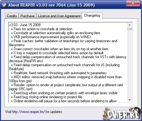 Reaper - компактный аудиоредактор для создания, редактирования и записи многоканальных аудиотреков с возможностью обработки каждого трека по отдельности. REAPER позволяет применять во время обработки аудио множество эффектов, поддерживает технологии ASIO, Kernel Streaming, WaveOut и DirectSound воспроизведение и запись. Поддерживает работу с файлами в форматах WAV, OGG, MP3, MIDI (чтение) и WAV, MIDI (запись), управление уровнем громкости, изменение границ трека, допускает многоуровневый откат/повтор выполненных операций и многое другое.