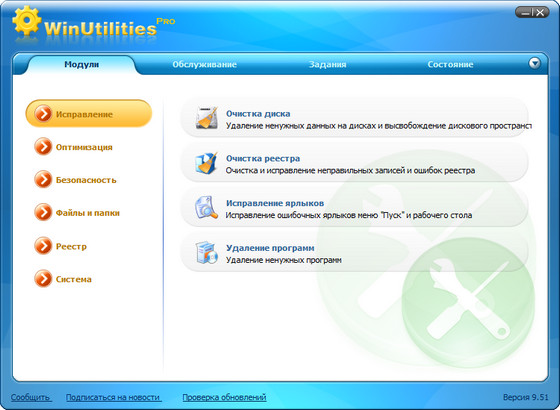 WinUtilities - набор для настройки вашей системы, содержащий более 20 инструментов для увеличения и настройки производительности вашего компьютера. Программа предлагает привлекательный и легкий в использовании интерфейс, который организует все задачи по категориям и предоставляет графическую статистику там, где это возможно.