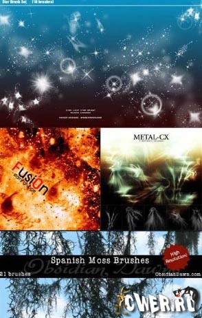 Сборник для работы в Photoshop содержит около 4000 кистей, 1500 стилей и 1200 градиентов.
