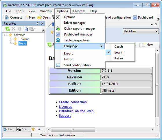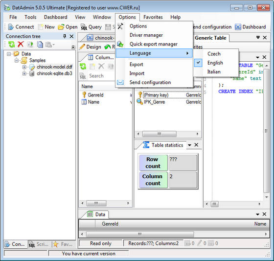 DatAdmin - графический интерфейс с поддержкой ODBC для баз данных SSQL, MySQL, SQLite. Также с помощью DatAdmin можно создавать, восстанавливать, переносить данные между базами данных, таблицами или файлами (поддерживается форматы - XML, CSV, DBF), редактировать структуру базы данных, просматривать содержимое таблиц любого размера.