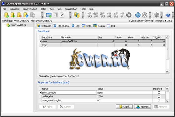 SQLite Developer - менеджер по управлению базами данных SQlite3. Содержит эффективные инструменты управления данными. Возможности: мощный редактор SQL, подсветка кода, ведение истории, автоматическая подстановка завершающих слов, поддержка юникода, форматирование SQL, поддержка кодирования и декодирования ansi, utf-8, utf-16. Программа имеет простой и интуитивно понятный графический интерфейс. Работает на платформах Windows 98/2000/XP/Vista/Seven.
