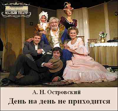 Спектакль Малого театра «День на день не приходится» по пьесе Островского "Тяжелые дни" - это светлый, добрый и ироничный, веселый и полностью традиционный, превращенный в настоящую лирическую комедию.