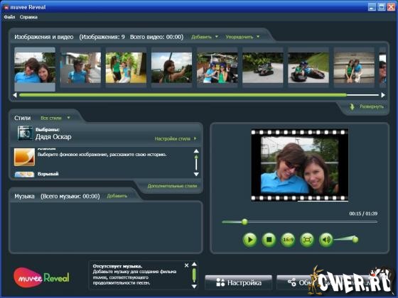 Muvee Reveal - полный автомат для создания фильмов в домашних условиях из фотографий и видео. Нужен тем, кто не привык "заморачиваться" тонкостями видеомонтажа. Всего в один клик вы переместите материал в конструктор с вашей видеокамеры, телефона, или фотокамеры, - любое кино независимо от его формата, включая высокой четкости разрешением 1280x720 и 1920x1080 и в видео форматах NTSC и PAL Можно добавить соответствующую музыку, закадровый текст и пр., а все остальное сделает программа сама.