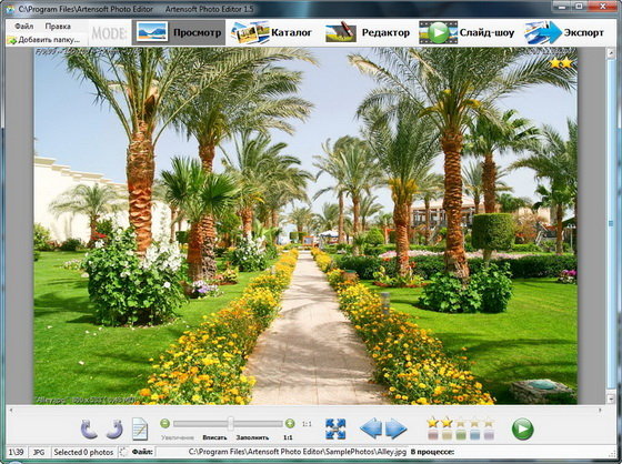 Artensoft Photo Editor - полнофункциональный и простой в использовании фоторедактор позволит Вам загружать новые снимки, просматривать, конвертировать, пакетно обрабатывать и редактировать цифровые изображения, а также насладиться приятным слайдшоу из выбранных фото. Данный редактор поддерживает множество форматов цифровых изображений, в том числе и RAW.