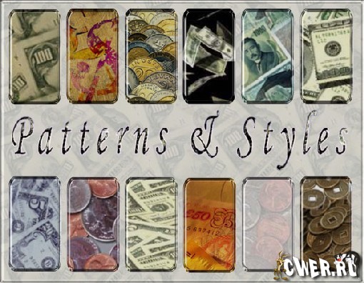 Сборник для работы в Photoshop содержит около 4000 кистей, 1500 стилей и 1200 градиентов.