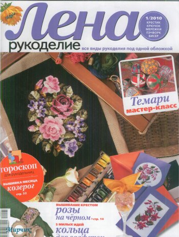 В одном журнале все виды рукоделия: вышивка крестом, гладью, лентами (картины, подушки, салфетка), вязание крючком, фильцевание, пэчворк, бисероплетение. Море интересных идей и милых вещичек.