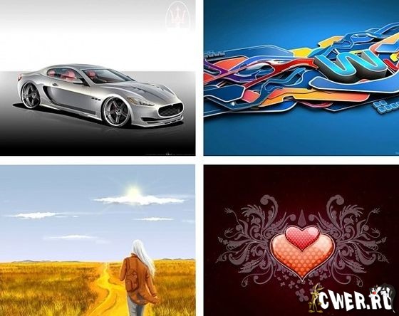 300 обоин с автомобилями в векторном стиле. Формат: JPG. Размеры самые различные: от 1024х768 до 1920х1200.